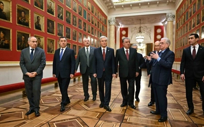 Президент Қасим-Жомарт Тоқаев МДҲнинг норасмий саммитида иштирок этиш учун Санкт-Петербургга келган бошқа давлат раҳбарлари билан биргаликда Эрмитажни томоша қилди.