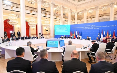 МОSKVА. Кazinform — Қозоғистон Парламенти делегацияси Коллектив хавфсизлик шартномаси ташкилоти Парламент Ассамблеяси Кенгашининг қўшма мажлиси ва ХVIII ялпи мажлисида иштирок этди. Делегацияга Мажилис раиси Ерлан Қошанов бошчилик қилди.